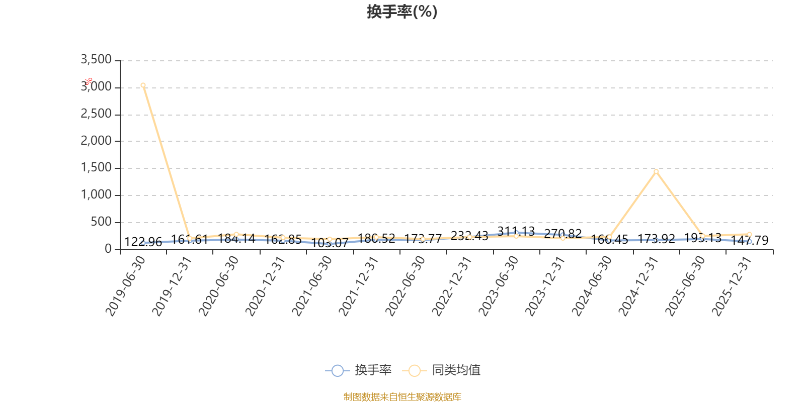 截至2025年12月31日,基金最近一年换手率约308.5%,持续2年低于同类均值。