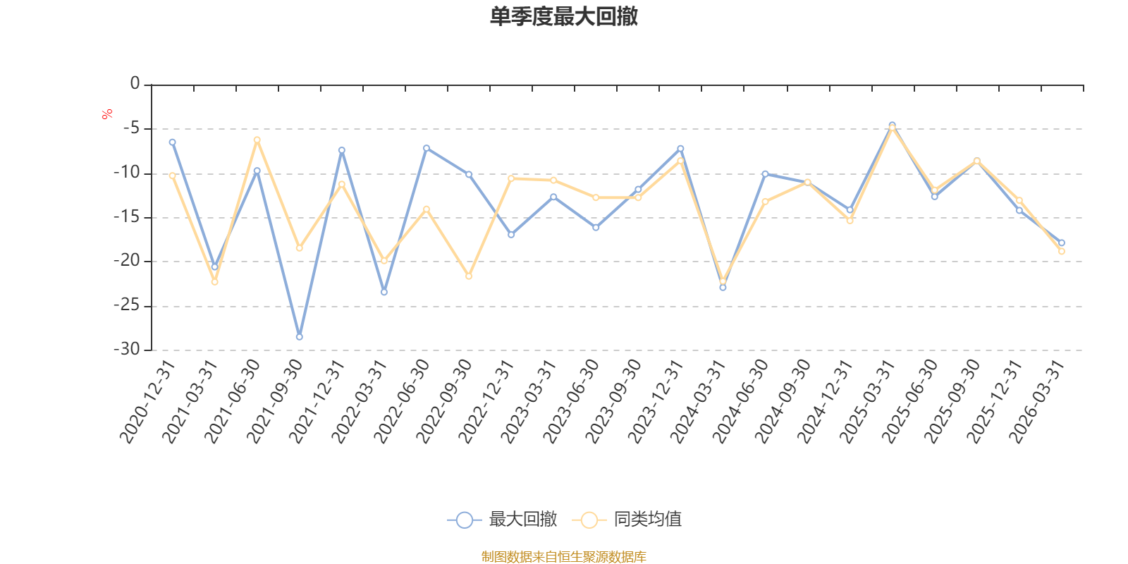 截至4月8日,基金近三年最大回撤为30.98%,同类可比基金排名6/76。单季度最大回撤出现在2021年三季度,为28.51%。