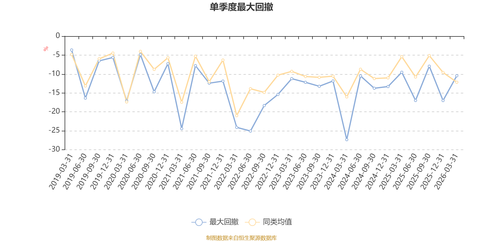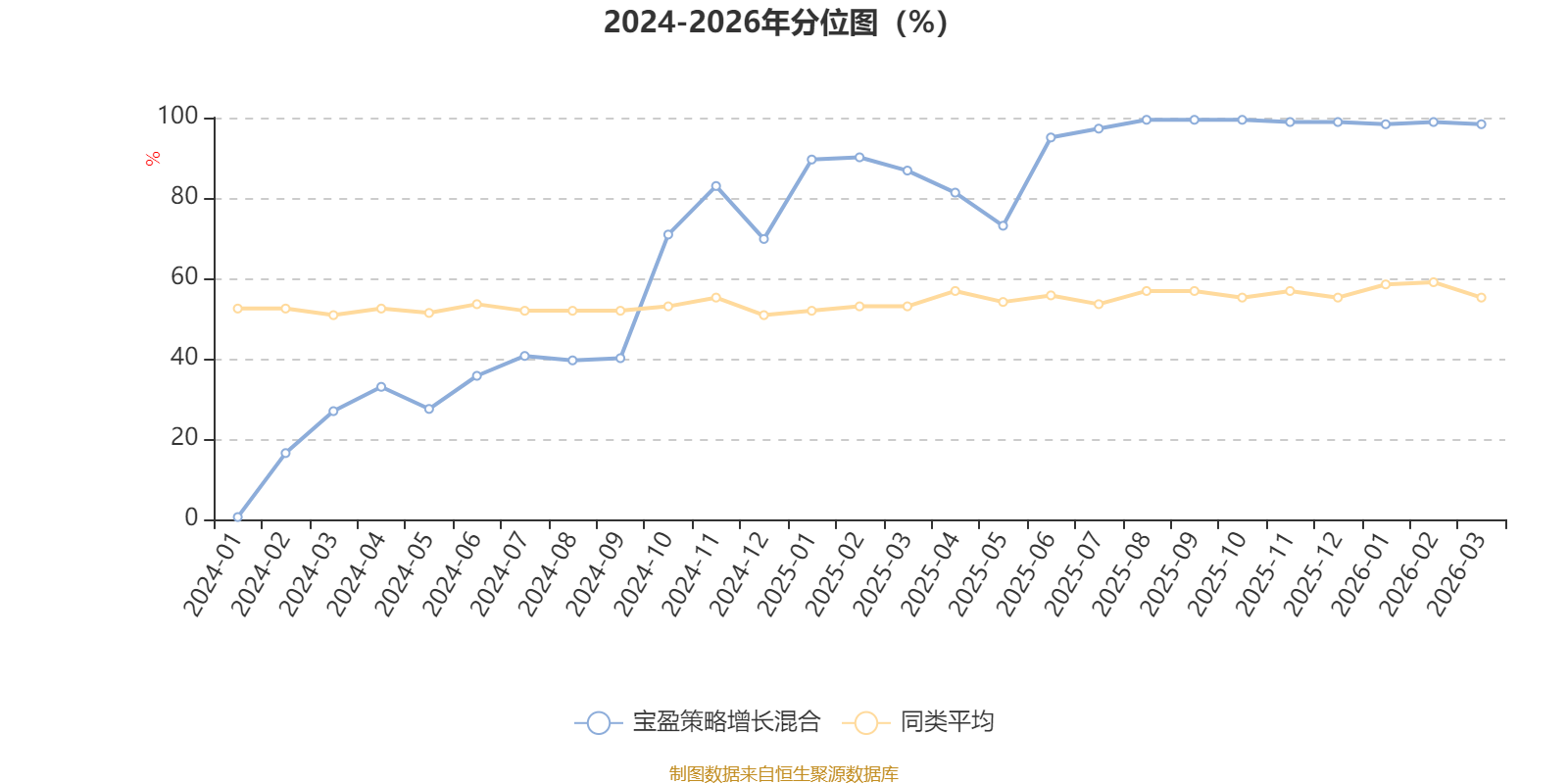 通过所选区间该基金净值增长率分位图,可以观察该基金与同类基金业绩比较情况。图为坐标原点到区间内某时点的净值增长率在同类基金中的分位数。