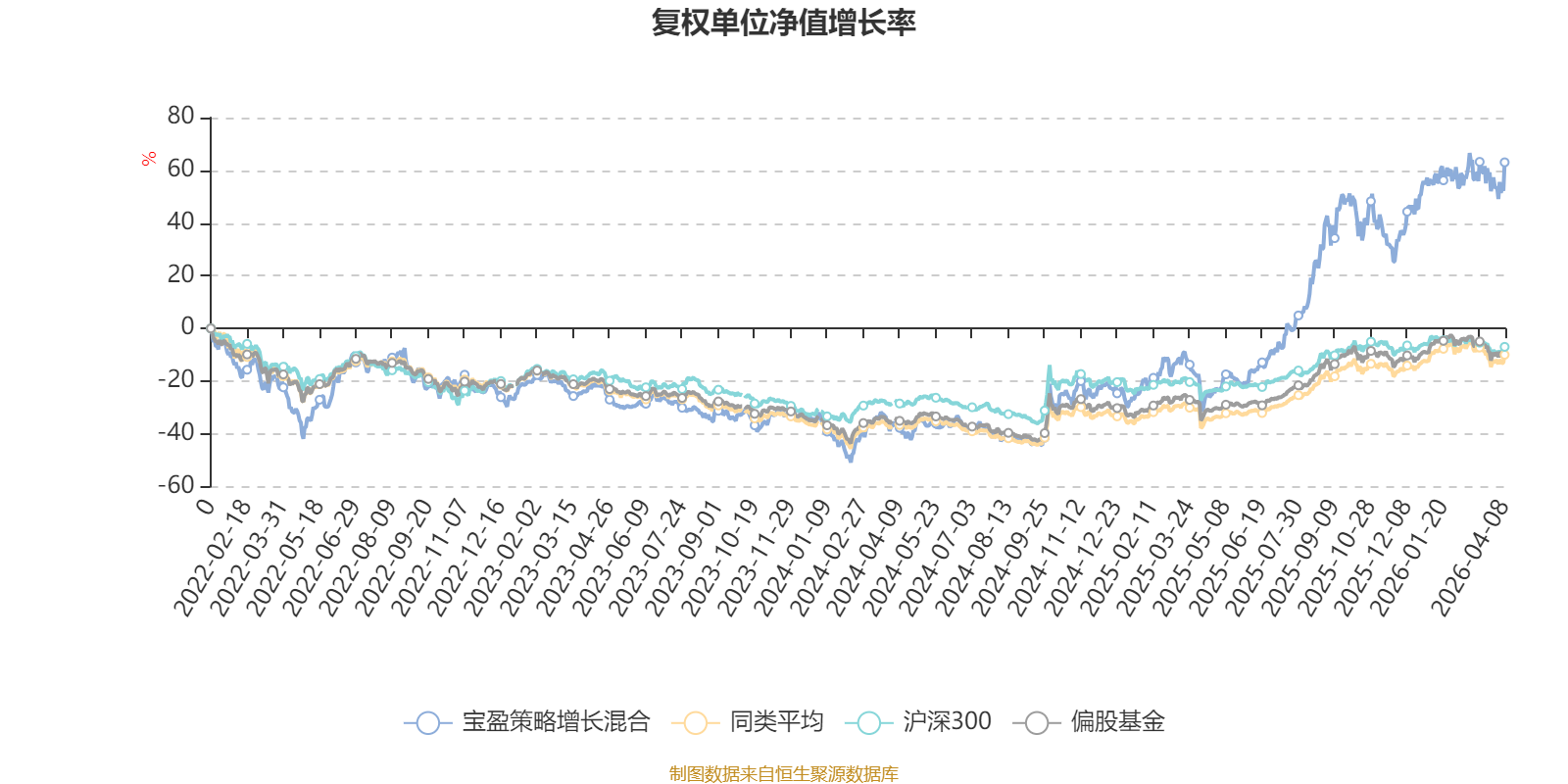截至4月8日,宝盈策略增长混合近三个月复权单位净值增长率为5.57%,位于同类可比基金22/185;近半年复权单位净值增长率为9.25%,位于同类可比基金33/185;近一年复权单位净值增长率为137.76%,位于同类可比基金2/185;近三年复权单位净值增长率为105.73%,位于同类可比基金4/177。