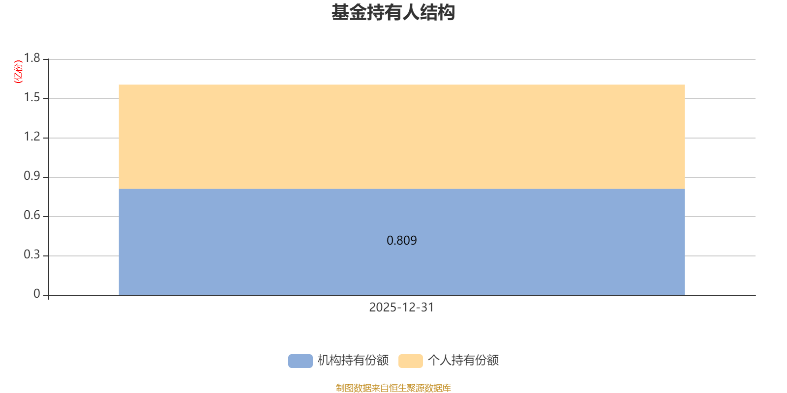 截至2025年12月31日,基金持有人共计559户,合计持有1.6亿份。其中管理人员工持有9.91万份,占比0.06%,机构持有份额占比50.43%,个人投资者占比49.57%。