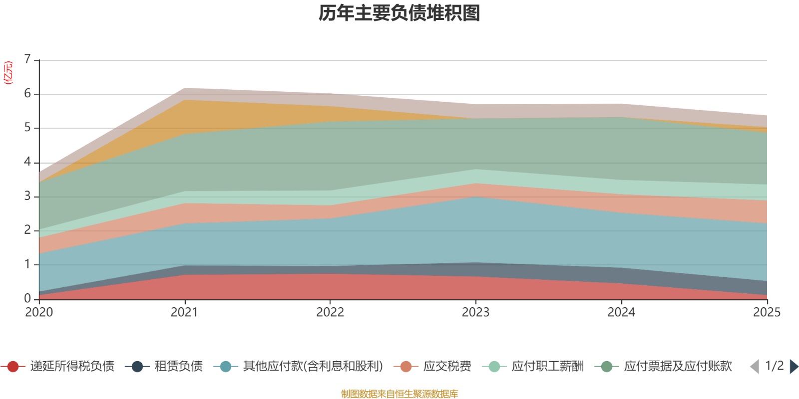 负债重大变化方面,截至2025年末,公司应付票据及应付账款较上年末减少17.42%,占公司总资产比重下降1.21个百分点;递延所得税负债较上年末减少74.19%,占公司总资产比重下降1.2个百分点;短期借款占公司总资产的0.55%,上年末为0;应交税费较上年末增加23.99%,占公司总资产比重上升0.42个百分点。