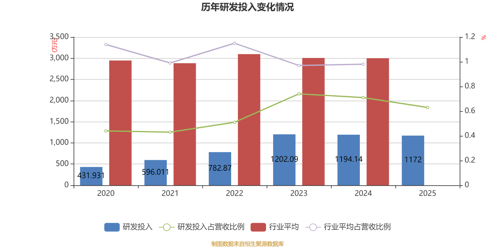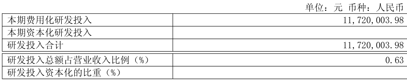 2025年全年,公司研发投入金额为1172万元,同比下降1.85%;研发投入占营业收入比例为0.63%,相比上年同期下降0.08个百分点。此外,公司全年研发投入资本化率为0%。