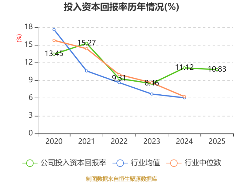 数据显示,2025年公司加权平均净资产收益率为11.97%,较上年同期下降0.27个百分点。公司2025年投入资本回报率为10.83%,较上年同期下降0.29个百分点。