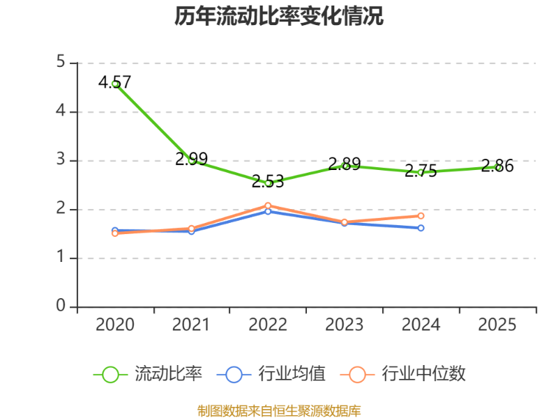 2025年,公司流动比率为2.86,速动比率为2.7。