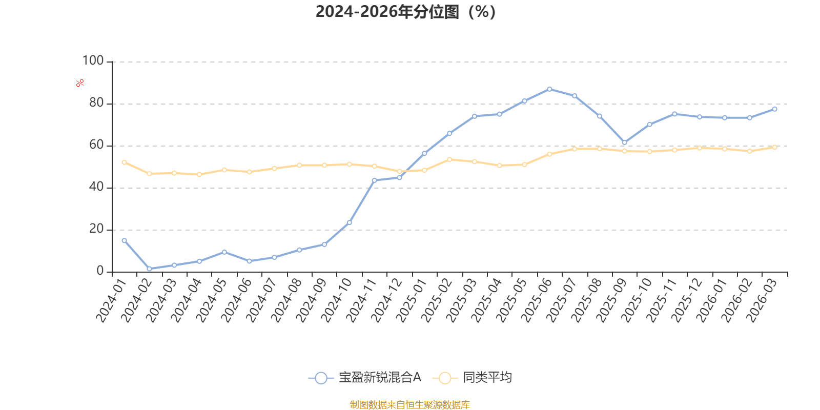 通过所选区间该基金净值增长率分位图,可以观察该基金与同类基金业绩比较情况。图为坐标原点到区间内某时点的净值增长率在同类基金中的分位数。