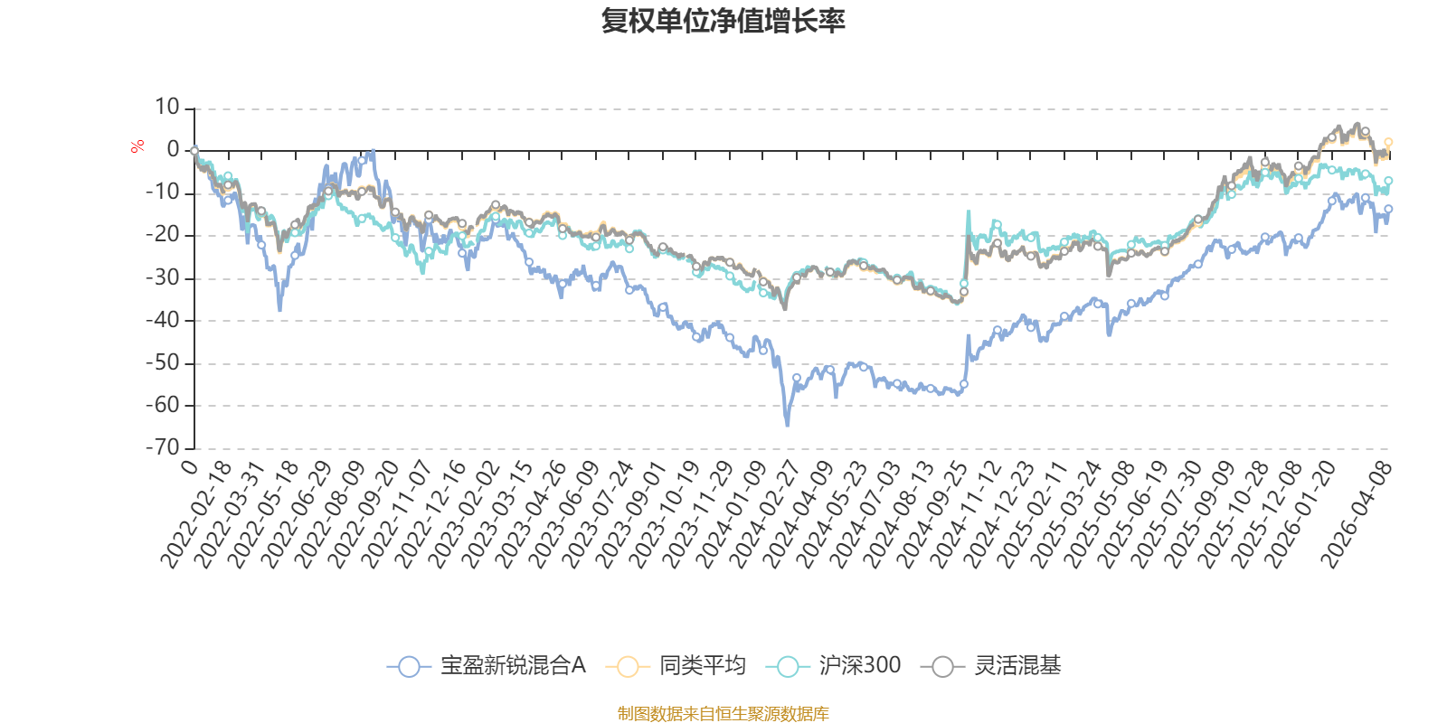 截至4月8日,宝盈新锐混合A近三个月复权单位净值增长率为2.87%,位于同类可比基金323/1287;近半年复权单位净值增长率为13.36%,位于同类可比基金176/1286;近一年复权单位净值增长率为53.05%,位于同类可比基金366/1286;近三年复权单位净值增长率为22.93%,位于同类可比基金448/1286。
