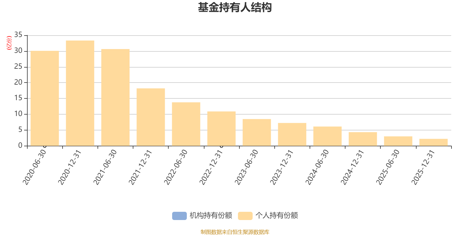 截至2025年12月31日,基金持有人共计1995户,合计持有2.22亿份。个人投资者占比100.00%。