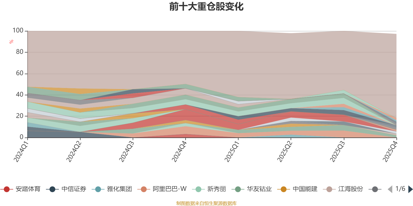 截至2025年末,基金十大重仓股分别是中国平安、中国人寿、中金公司、新易盛、华友钴业、贵州茅台、安琪酵母、中际旭创、江海股份、中信特钢。