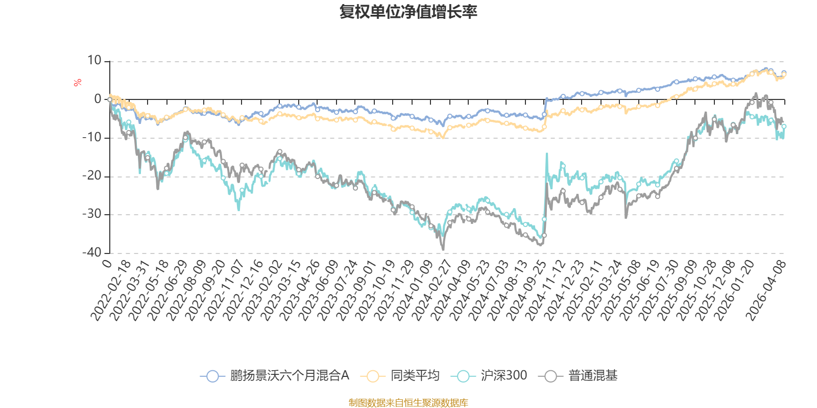 截至4月8日,鹏扬景沃六个月混合A近三个月复权单位净值增长率为0.86%,位于同类可比基金226/629;近半年复权单位净值增长率为1.40%,位于同类可比基金315/629;近一年复权单位净值增长率为5.80%,位于同类可比基金419/629;近三年复权单位净值增长率为8.63%,位于同类可比基金367/581。