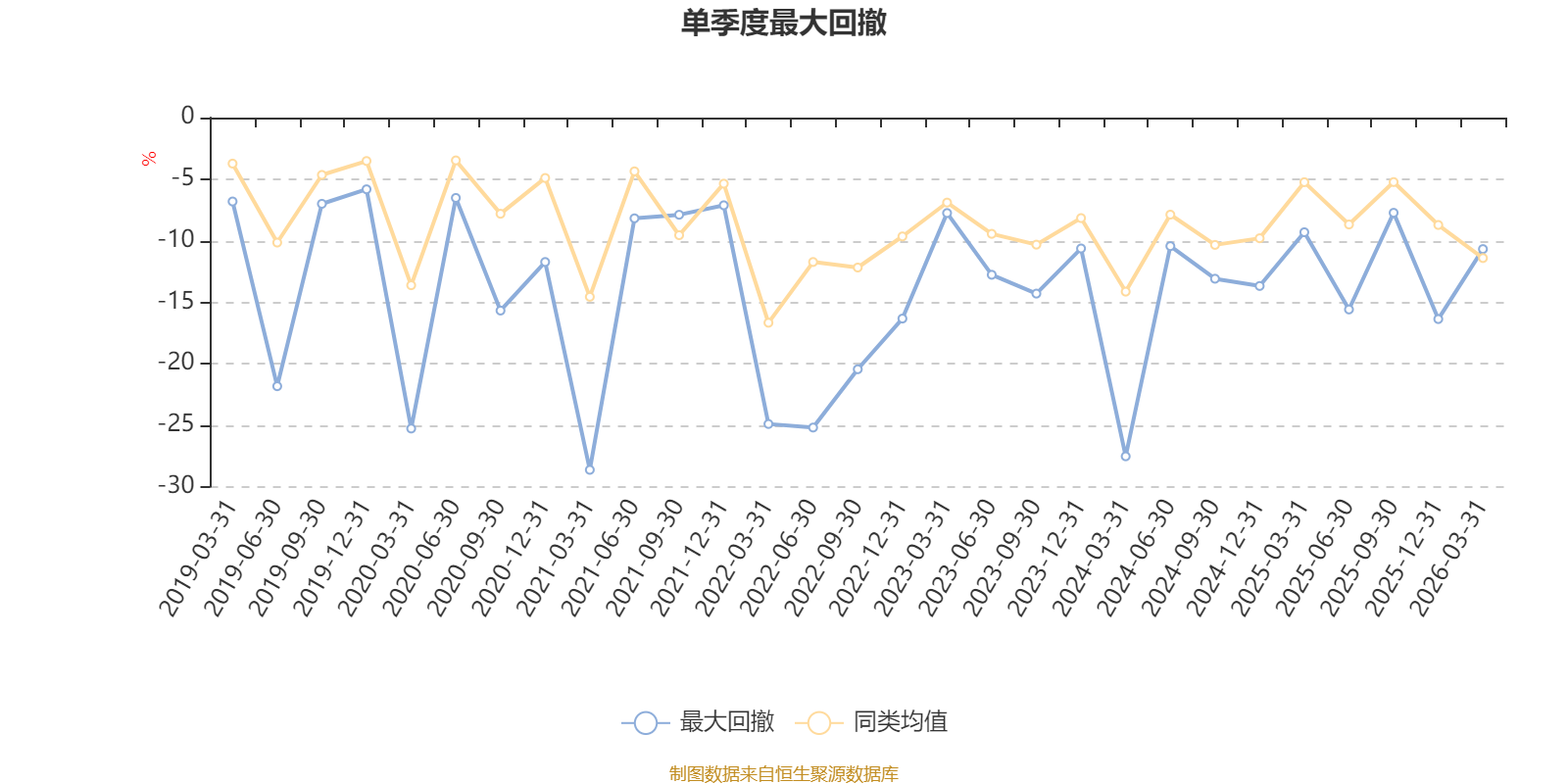 通过所选区间该基金净值增长率分位图,可以观察该基金与同类基金业绩比较情况。图为坐标原点到区间内某时点的净值增长率在同类基金中的分位数。