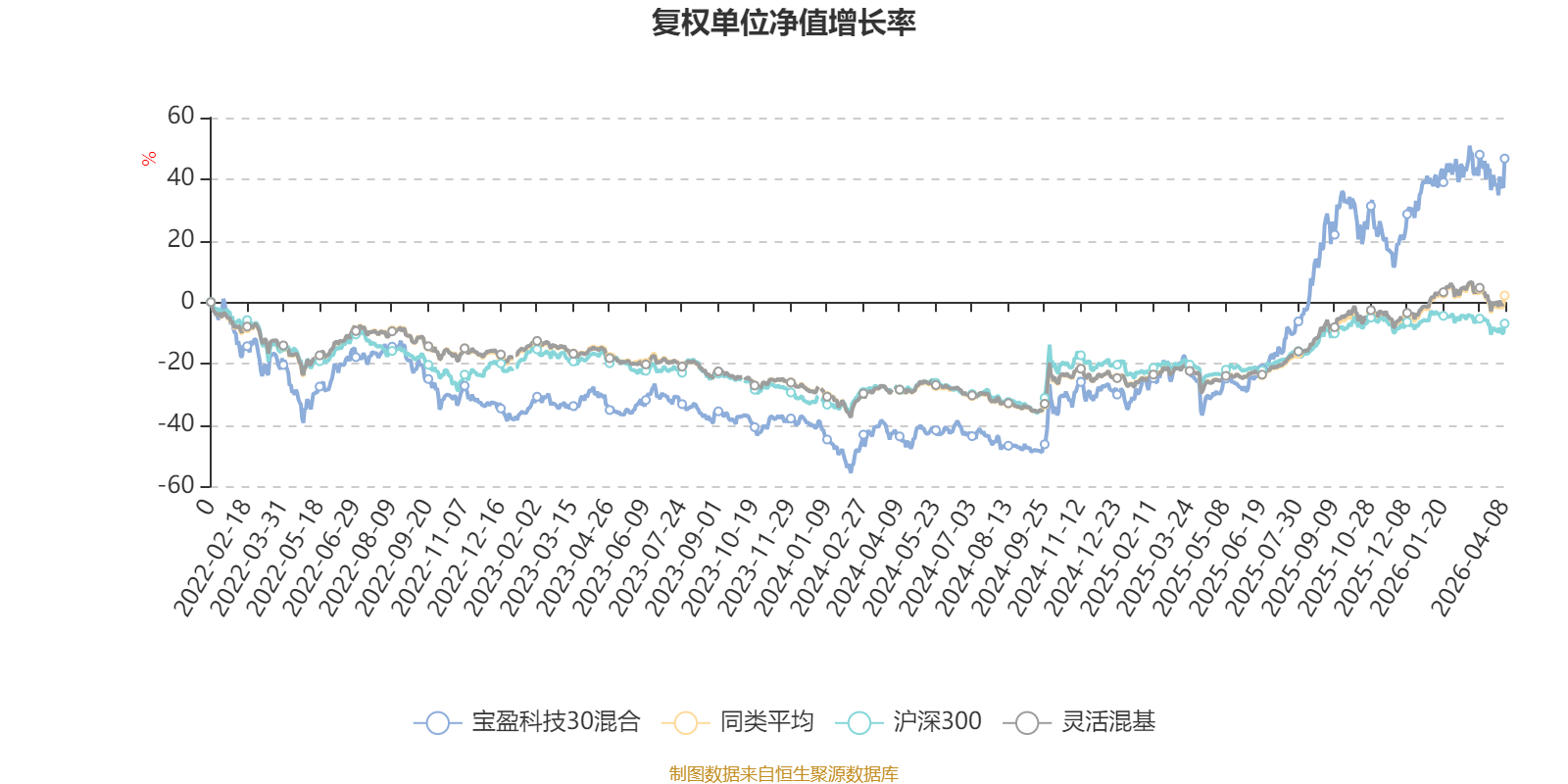 截至4月8日,宝盈科技30混合近三个月复权单位净值增长率为6.45%,位于同类可比基金178/1287;近半年复权单位净值增长率为10.58%,位于同类可比基金255/1286;近一年复权单位净值增长率为132.06%,位于同类可比基金33/1286;近三年复权单位净值增长率为102.40%,位于同类可比基金32/1286。