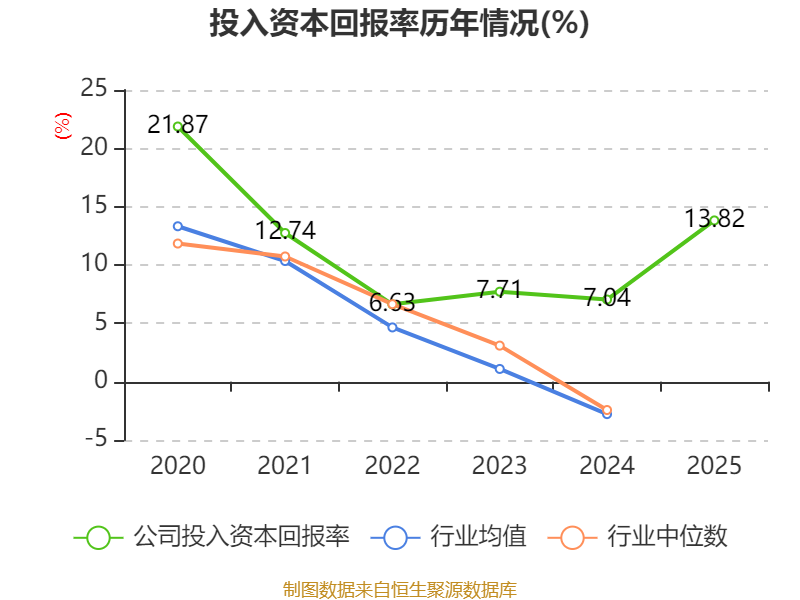 数据显示,2025年公司加权平均净资产收益率为18.68%,较上年同期上升7.37个百分点。公司2025年投入资本回报率为13.82%,较上年同期上升6.78个百分点。