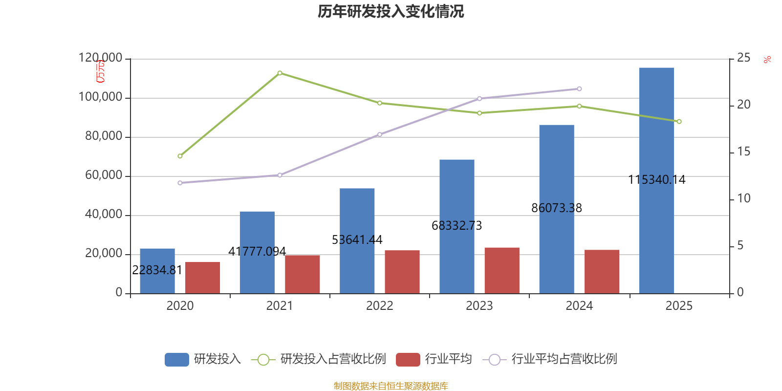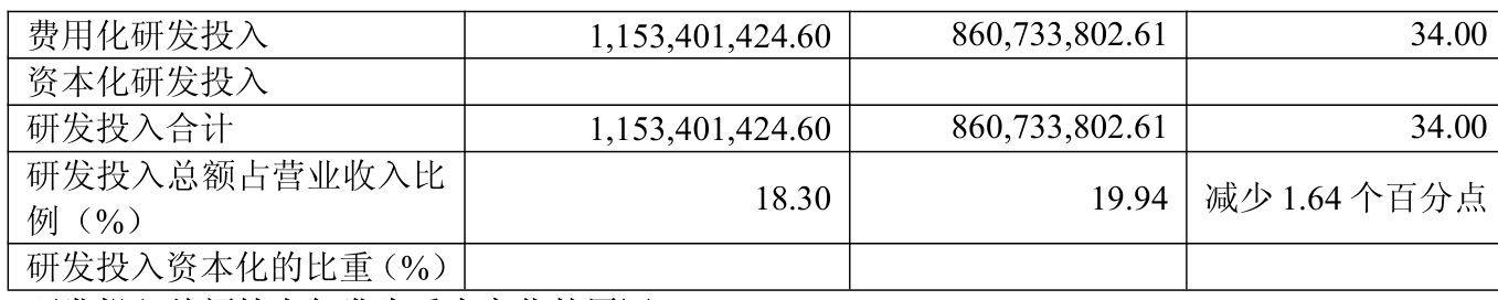 2025年全年,公司研发投入金额为11.53亿元,同比增长34%;研发投入占营业收入比例为18.3%,相比上年同期下降1.64个百分点。