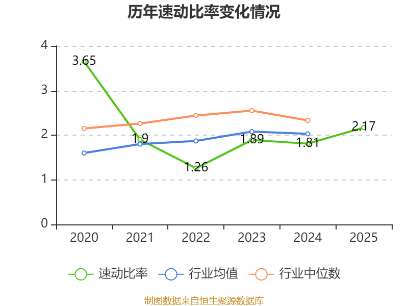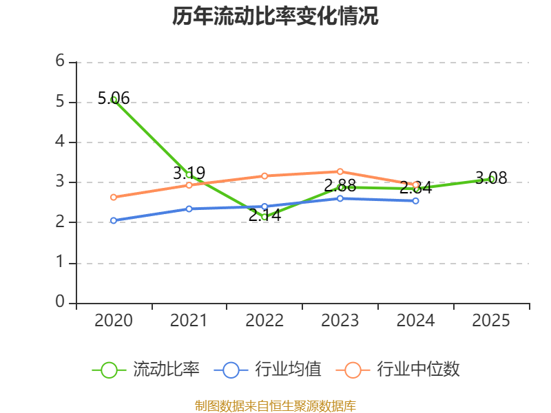 2025年,公司流动比率为3.08,速动比率为2.17。