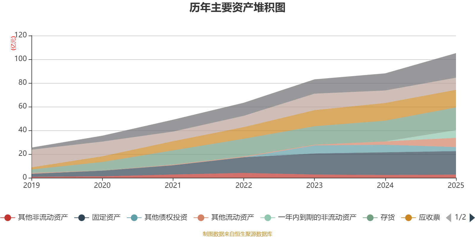 资产重大变化方面,截至2025年末,公司一年内到期的非流动资产占公司总资产的6.16%,上年末为0;其他流动资产较上年末增加173.13%,占公司总资产比重上升4.17个百分点;其他债权投资较上年末减少46.58%,占公司总资产比重下降4.01个百分点;交易性金融资产合计占公司总资产的3.67%,上年末为0。
