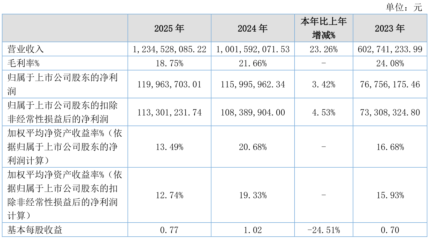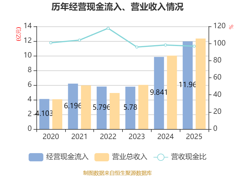 中证智能财讯聚星科技(920111)4月9日披露2025年年度报告。2025年,公司实现营业总收入12.35亿元,同比增长23.26%;归母净利润1.2亿元,同比增长3.42%;扣非净利润1.13亿元,同比增长4.53%;经营活动产生的现金流量净额为751.6万元,上年同期为-64.56万元;报告期内,聚星科技基本每股收益为0.77元,加权平均净资产收益率为13.49%。公司2025年度分配预案为:拟向全体股东每10股派现1元(含税)。