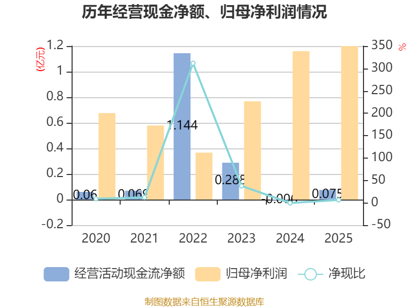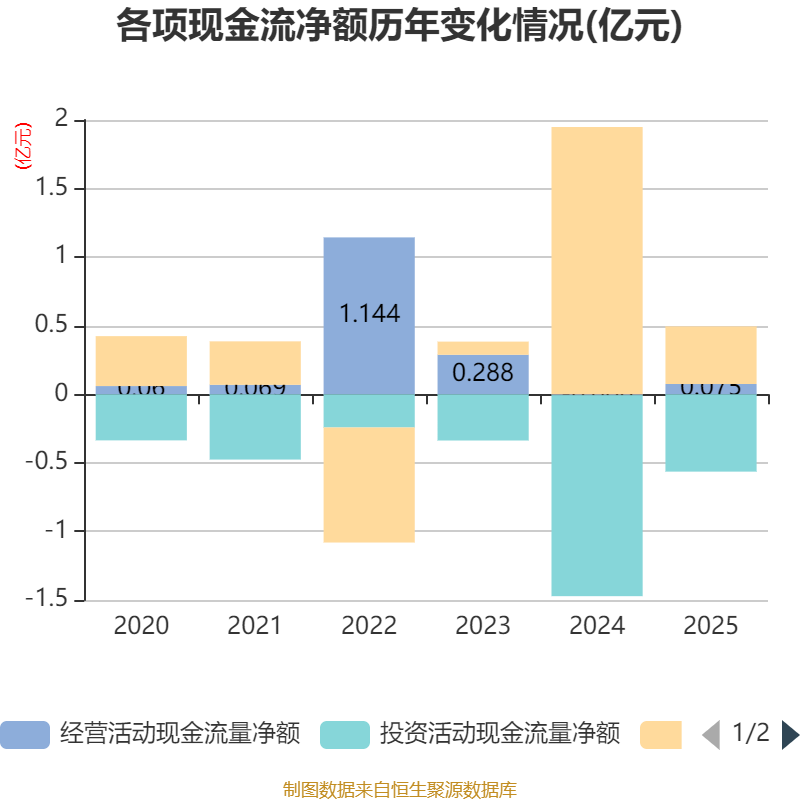 截至2025年,公司经营活动现金流净额为751.6万元,同比增加816.16万元;筹资活动现金流净额4201.71万元,同比减少1.53亿元;投资活动现金流净额-5642.95万元,上年同期为-1.47亿元。