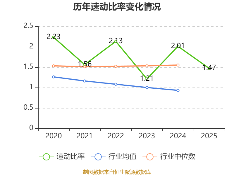 2025年,公司流动比率为2.13,速动比率为1.47。