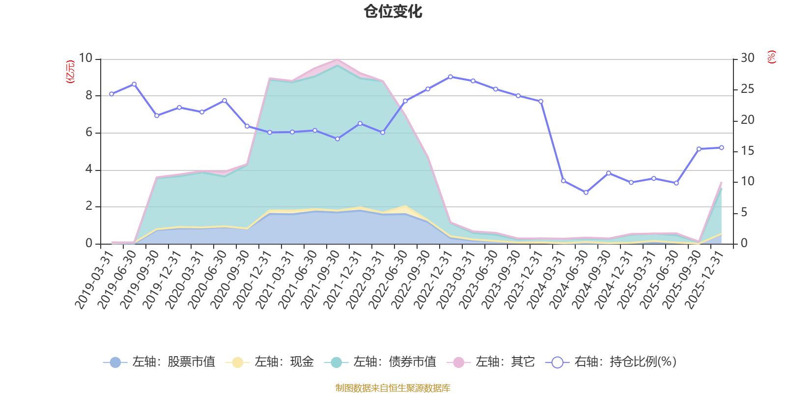据定期报告数据统计,近三年平均股票仓位为15.85%,同类平均为72.57%。2022年末基金达到27.11%的最高仓位,2024年上半年末最低,为8.35%。