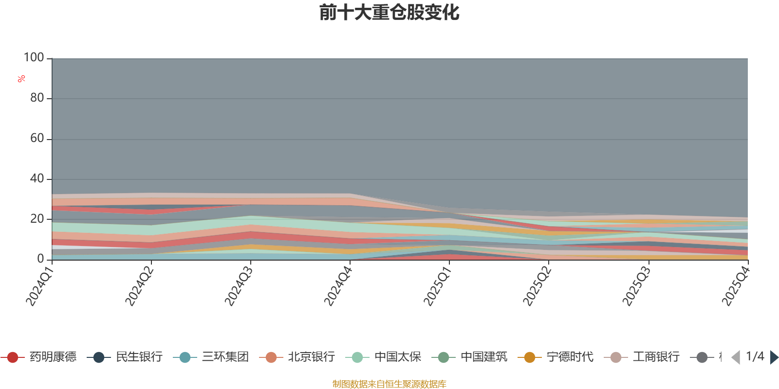 截至2025年末,基金十大重仓股分别是贵州茅台、中国平安、宁德时代、中际旭创、兴业银行、长江电力、伊利股份、北方华创、广发证券、立讯精密。