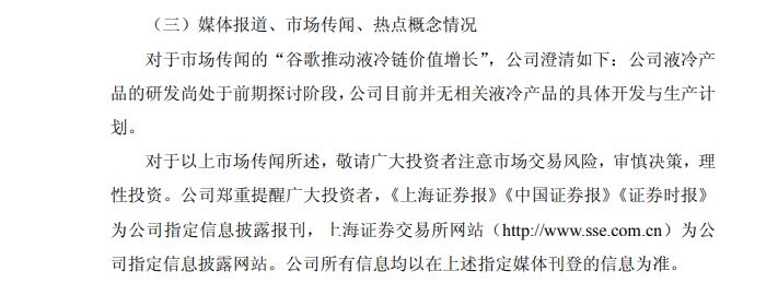 不过,针对这一市场传闻,利通电子在公告中明确澄清:公司液冷产品的研发尚处于前期探讨阶段,公司目前并无相关液冷产品的具体开发与生产计划。