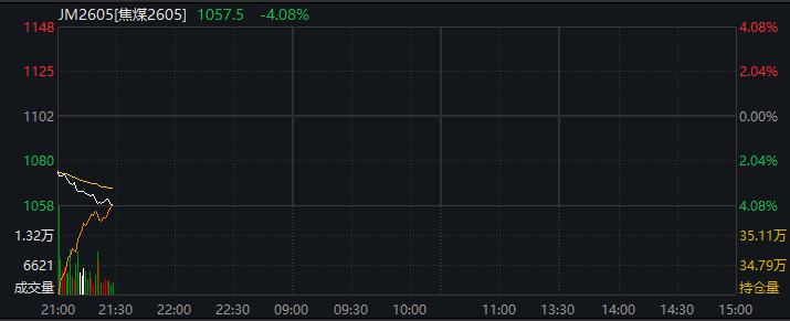 焦煤主力合约夜盘跌超4%