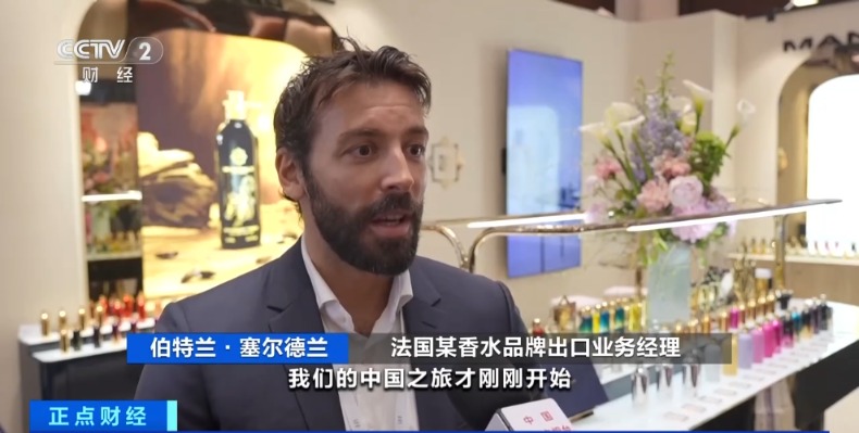 某法国香水品牌出口业务经理伯特兰·塞尔德兰:我们刚刚进入中国市场,我们的中国之旅才刚刚开始,我们希望很快消费者就能在上海的香水店找到这些产品。