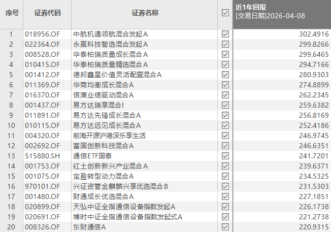 近一年来,多只重仓科技赛道的基金业绩表现突出。Choice数据显示,截至4月8日,中航机遇领航混合发起A、华泰柏瑞质量成长混合A、永赢科技智选混合发起A等多只产品近一年净值涨幅超过或接近三倍。