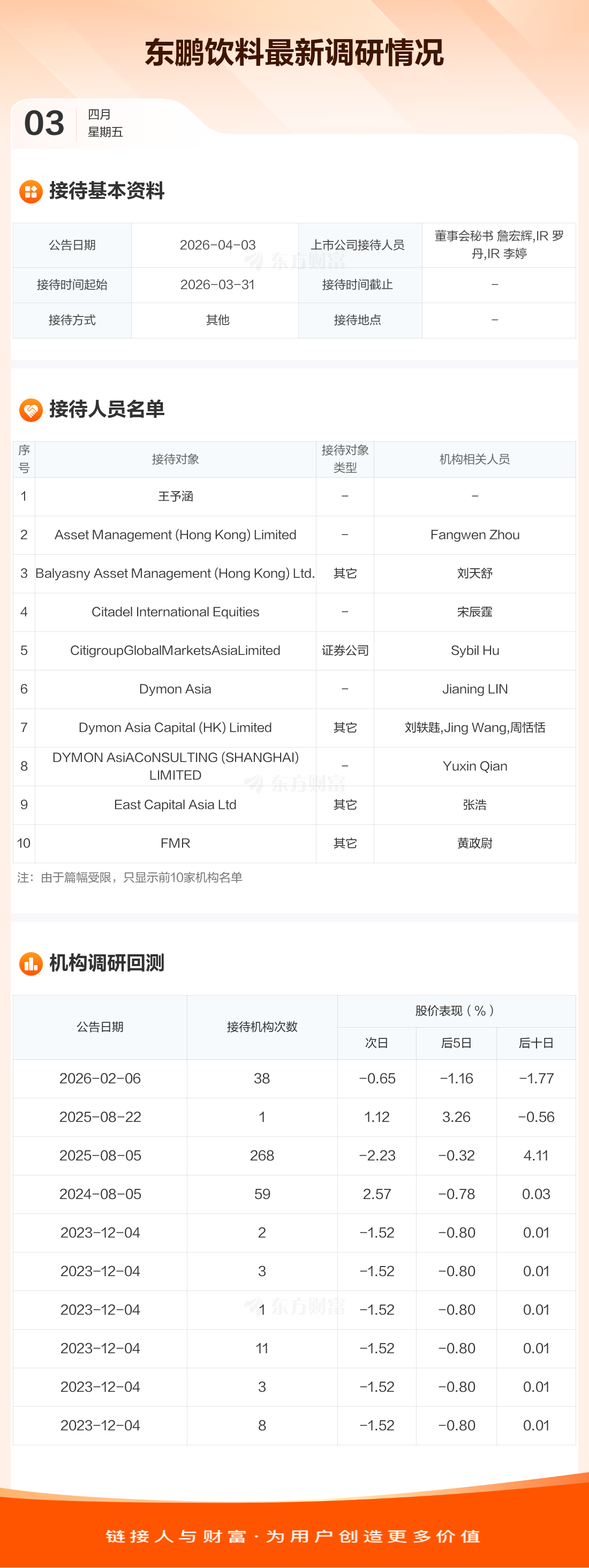 【调研快报】东鹏饮料接待王予涵等326家机构调研