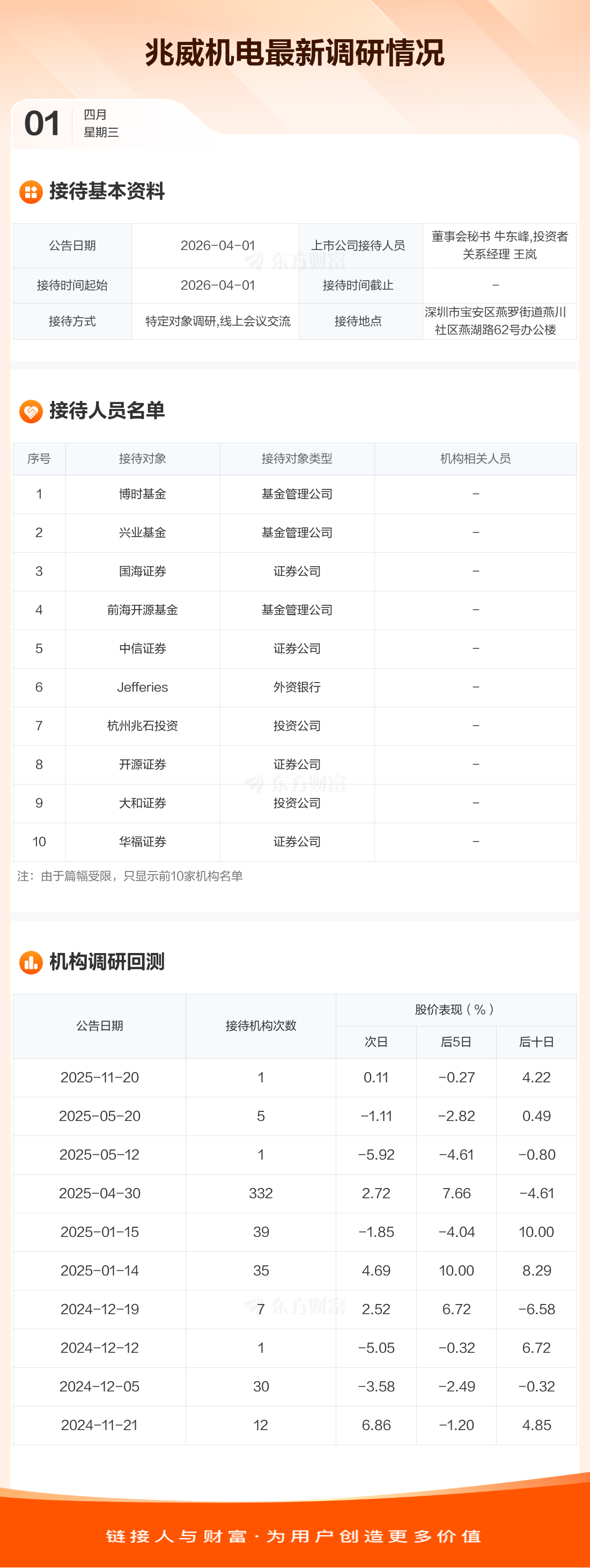【调研快报】兆威机电接待博时基金等115家机构调研