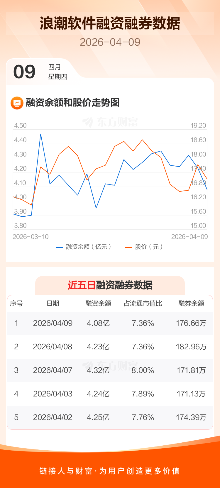 交易所最新数据显示,浪潮软件于2026年4月9日获融资买入3026.01万元,融资偿还4504.76万元,当日融资净偿还1478.75万元。目前,该股融资余额4.08亿,占流通市值比例为7.36%。