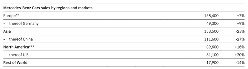 分区域来看,欧洲延续上季度积极态势,区域销量为15.84万辆,同比增长7%。德国市场表现尤为亮眼,销量增长9%。受全新电动CLA驱动,欧洲纯电动车型销量增长34%,德国市场增长36%。