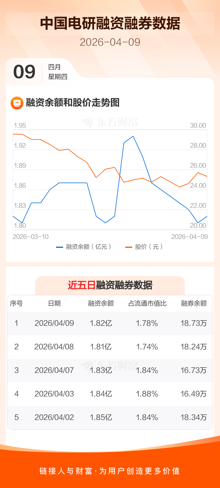 交易所最新数据显示,中国电研于2026年4月9日获融资买入706.90万元,融资偿还514.98万元,当日融资净买入191.91万元。目前,该股融资余额1.82亿,占流通市值比例为1.78%。