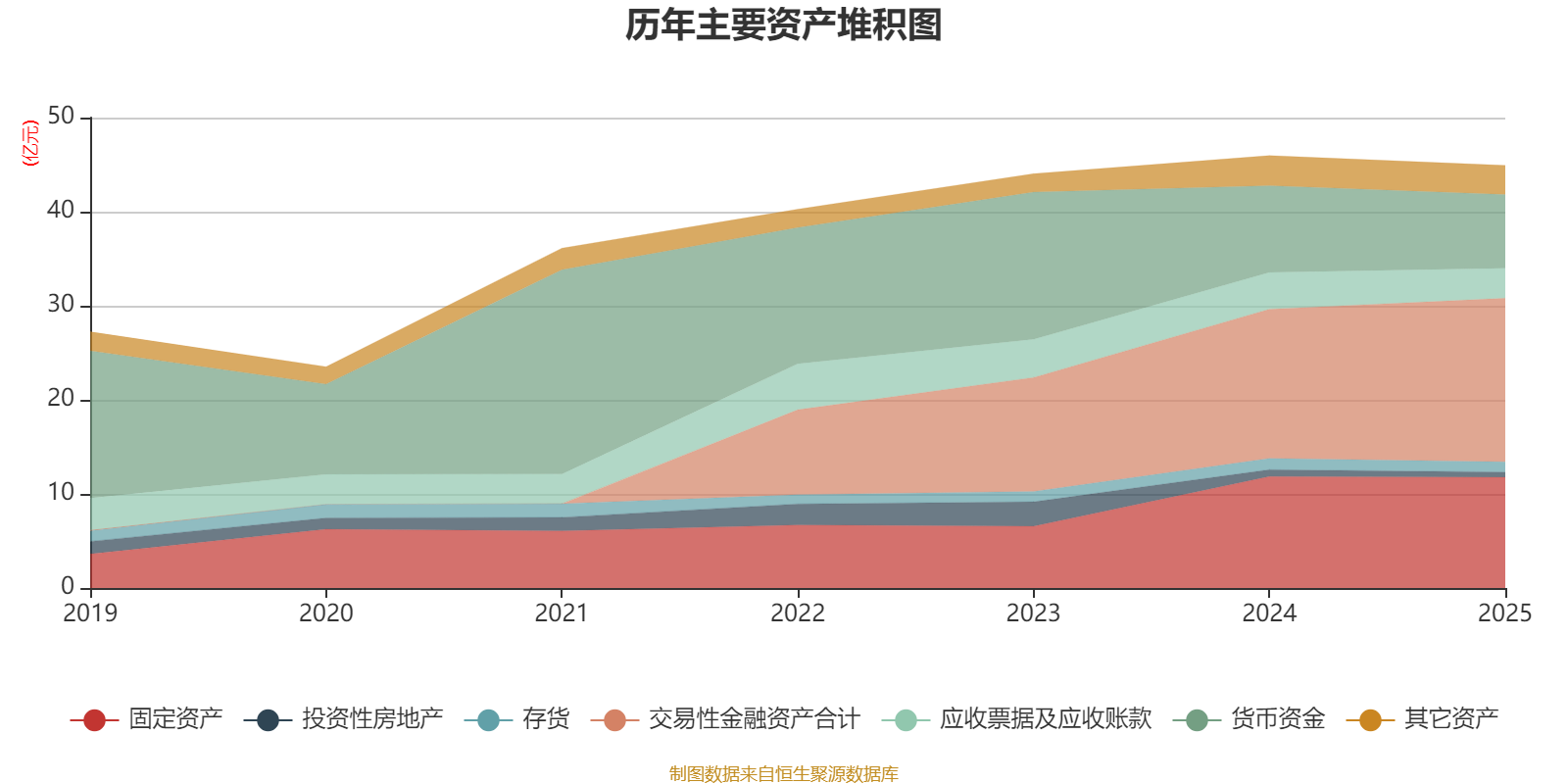 资产重大变化方面,截至2025年末,公司交易性金融资产合计较上年末增加9.65%,占公司总资产比重上升4.22个百分点;货币资金较上年末减少15.13%,占公司总资产比重下降2.64个百分点;应收票据及应收账款较上年末减少18.3%,占公司总资产比重下降1.39个百分点;固定资产较上年末减少0.62%,占公司总资产比重上升0.44个百分点。