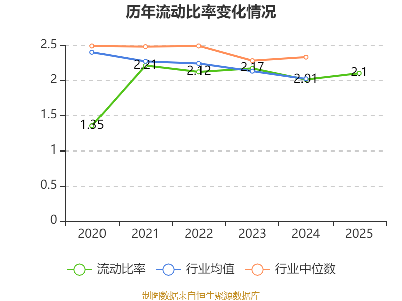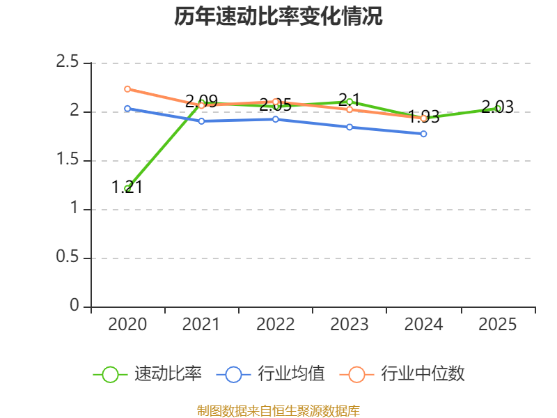 2025年,公司流动比率为2.1,速动比率为2.03。