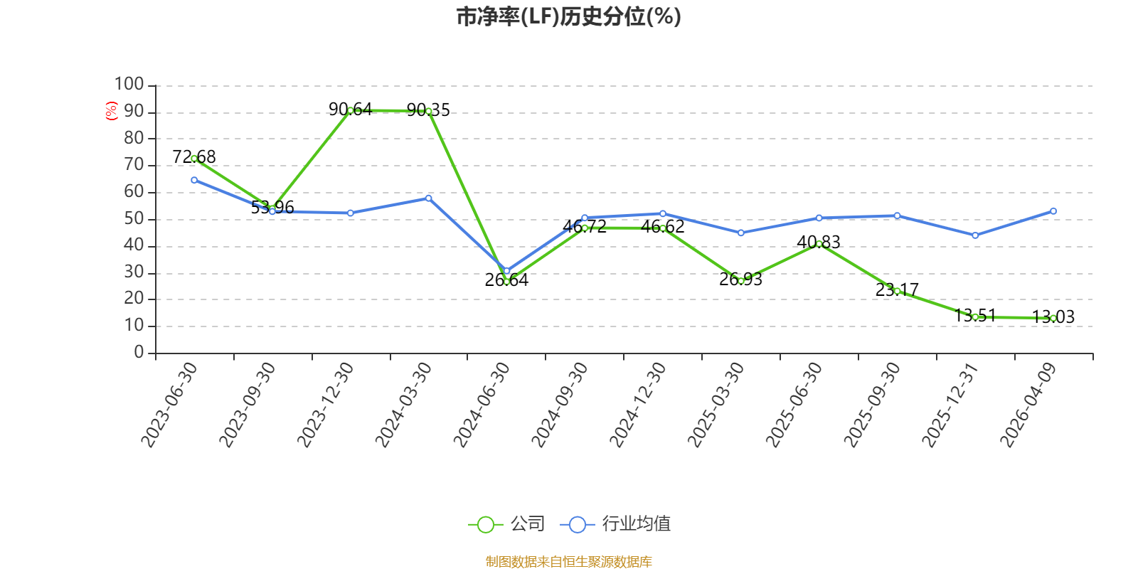 市盈率、市净率为负时,不显示当期分位数,会导致折线图中断。