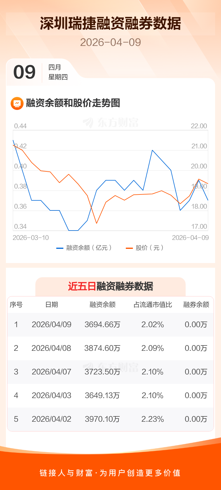 交易所最新数据显示,深圳瑞捷于2026年4月9日获融资买入225.99万元,融资偿还405.93万元,当日融资净偿还179.94万元。目前,该股融资余额3694.66万,占流通市值比例为2.02%。
