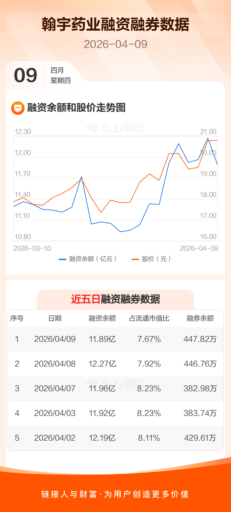 交易所最新数据显示,翰宇药业于2026年4月9日获融资买入1.37亿元,融资偿还1.76亿元,当日融资净偿还3850.65万元。目前,该股融资余额11.89亿,占流通市值比例为7.67%。