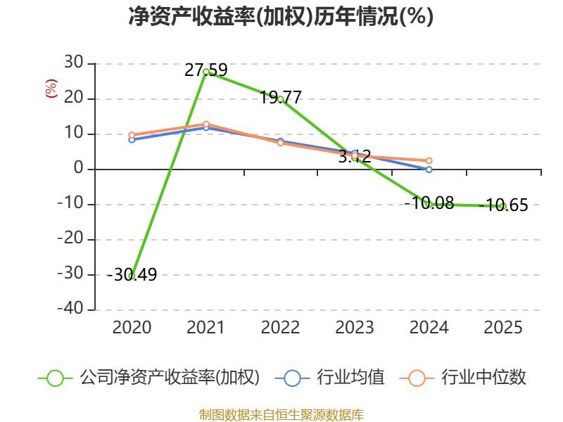 数据显示,2025年公司加权平均净资产收益率为-10.65%,较上年同期下降0.57个百分点。公司2025年投入资本回报率为-11.56%,较上年同期下降0.19个百分点。