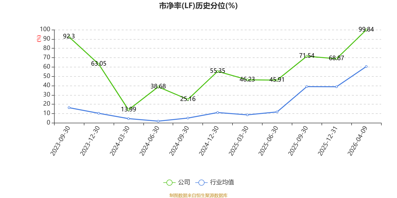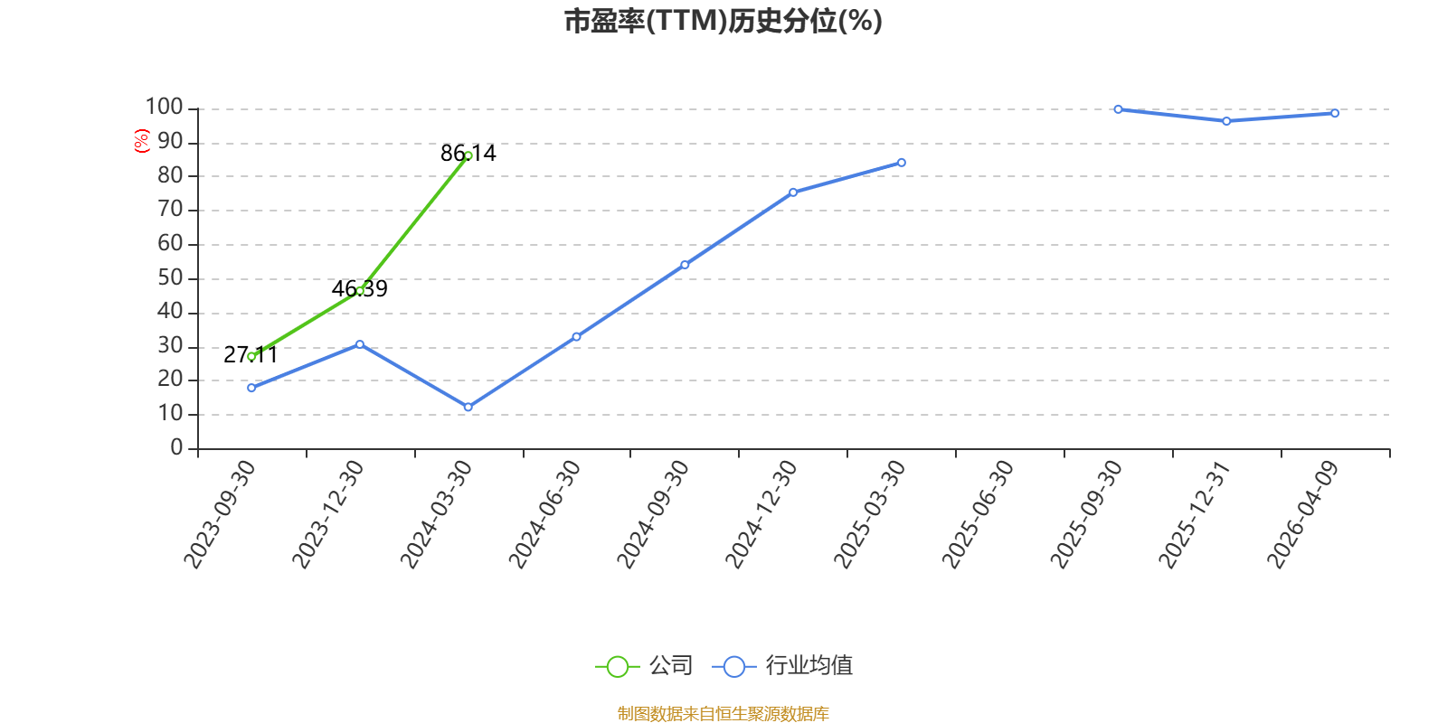 市盈率、市净率为负时,不显示当期分位数,会导致折线图中断。