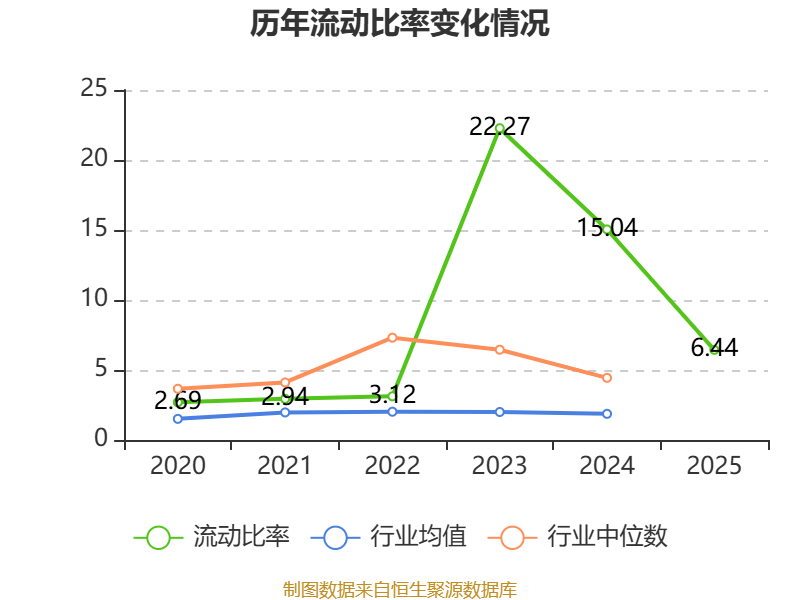 2025年,公司流动比率为6.44,速动比率为5.26。