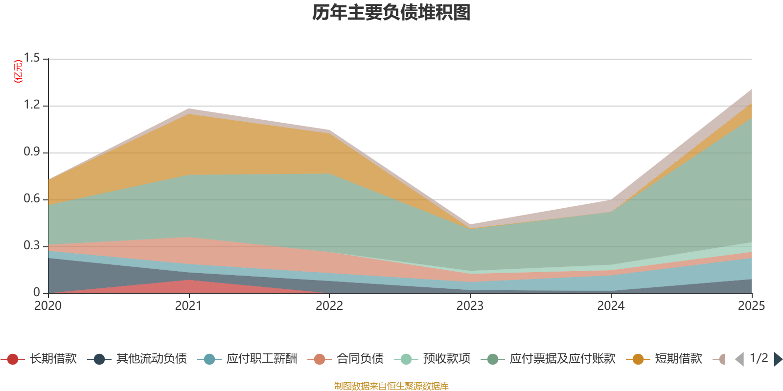 负债重大变化方面,截至2025年末,公司应付票据及应付账款较上年末增加135.74%,占公司总资产比重上升5个百分点;短期借款占公司总资产的1.03%,上年末为0;其他流动负债较上年末增加519.15%,占公司总资产比重上升0.81个百分点;应付职工薪酬较上年末增加36.02%,占公司总资产比重上升0.41个百分点。