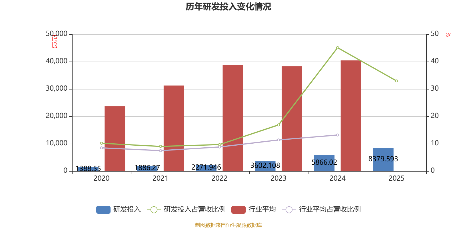 2025年全年,公司研发投入金额为8379.59万元,同比增长42.85%;研发投入占营业收入比例为32.92%,相比上年同期下降12.16个百分点。