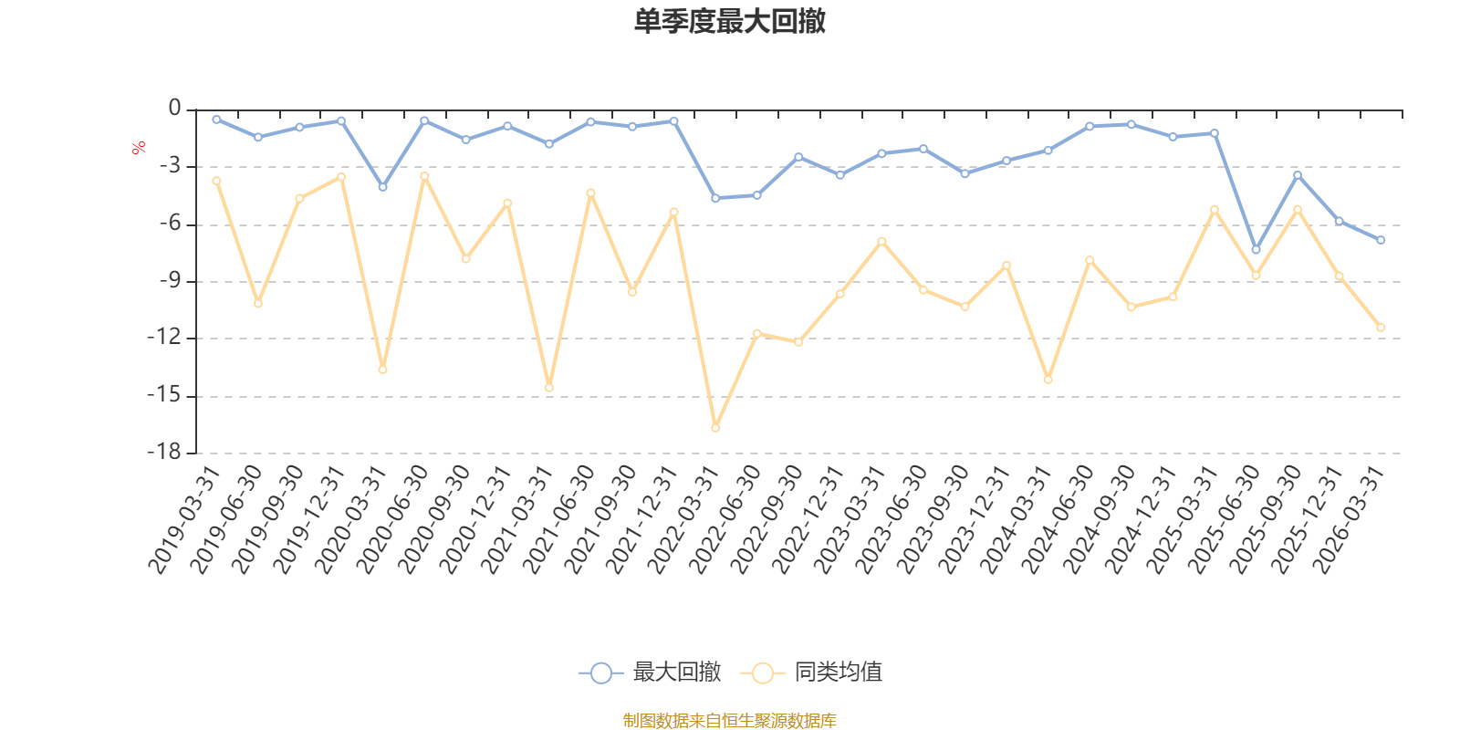 截至4月8日,基金近三年最大回撤为10.45%,同类可比基金排名144/1264。单季度最大回撤出现在2025年二季度,为7.34%。