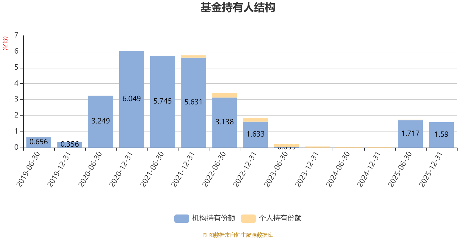 截至2025年12月31日,基金持有人共计682户,合计持有1.61亿份。其中管理人员工持有1.67万份,占比0.01%,机构持有份额占比98.82%,个人投资者占比1.18%。