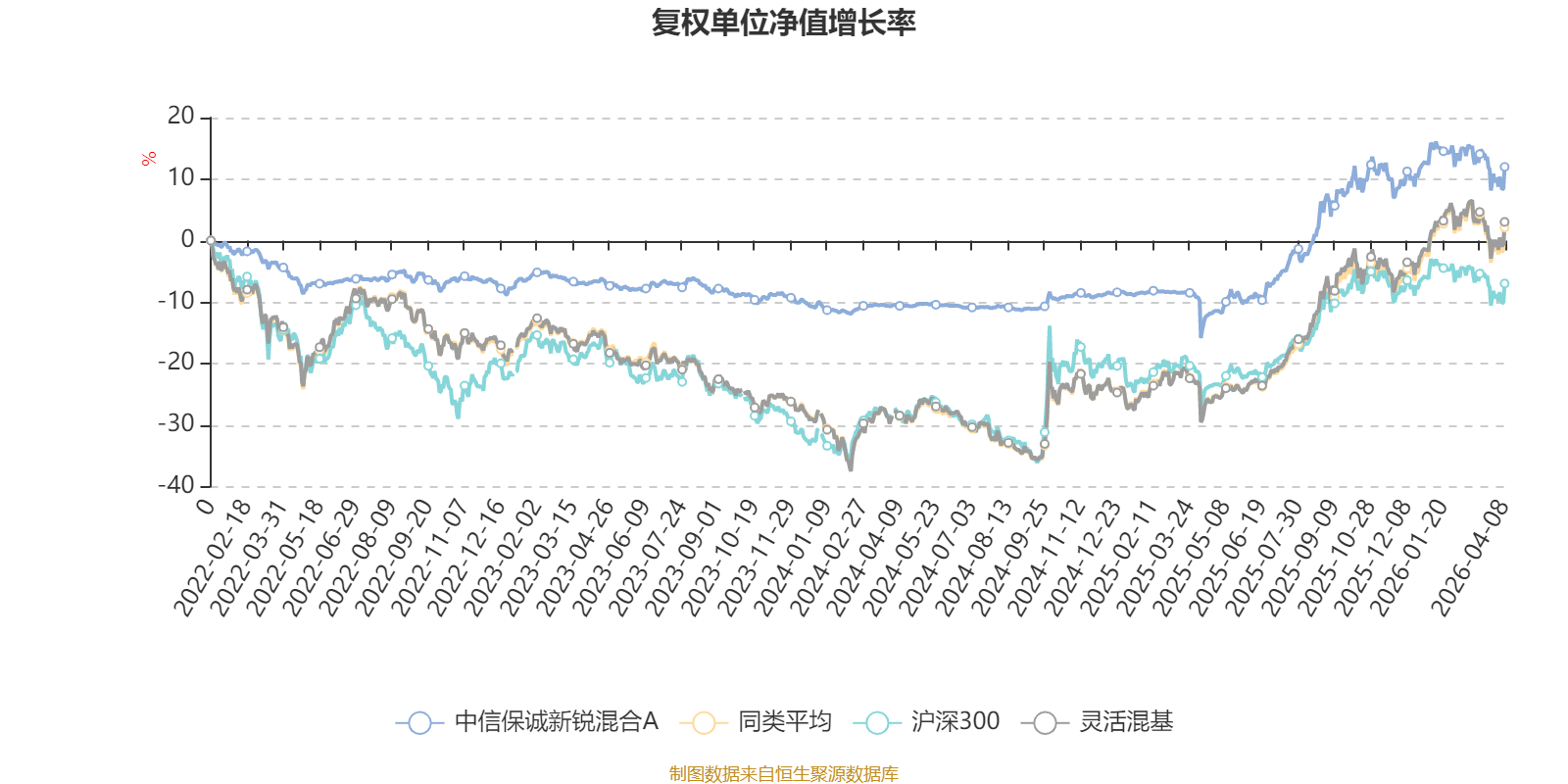 截至4月8日,中信保诚新锐混合A近三个月复权单位净值增长率为-2.44%,位于同类可比基金909/1287;近半年复权单位净值增长率为1.26%,位于同类可比基金759/1286;近一年复权单位净值增长率为31.06%,位于同类可比基金684/1286;近三年复权单位净值增长率为19.99%,位于同类可比基金500/1286。