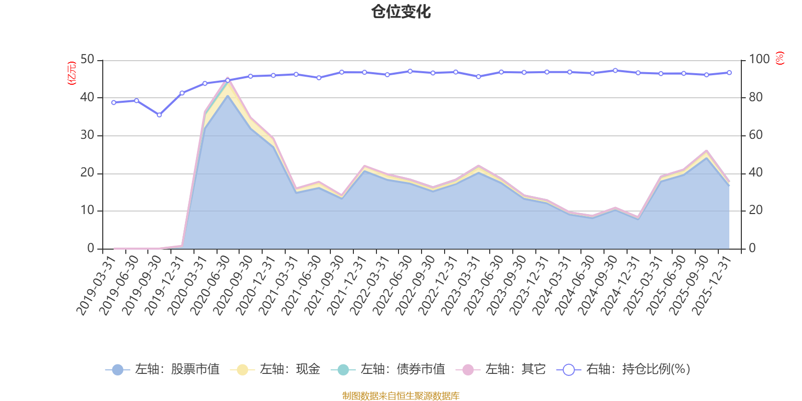 据定期报告数据统计,近三年平均股票仓位为93.2%,同类平均为86.9%。2024年三季度末基金达到94.55%的最高仓位,2019年三季度末最低,为70.97%。