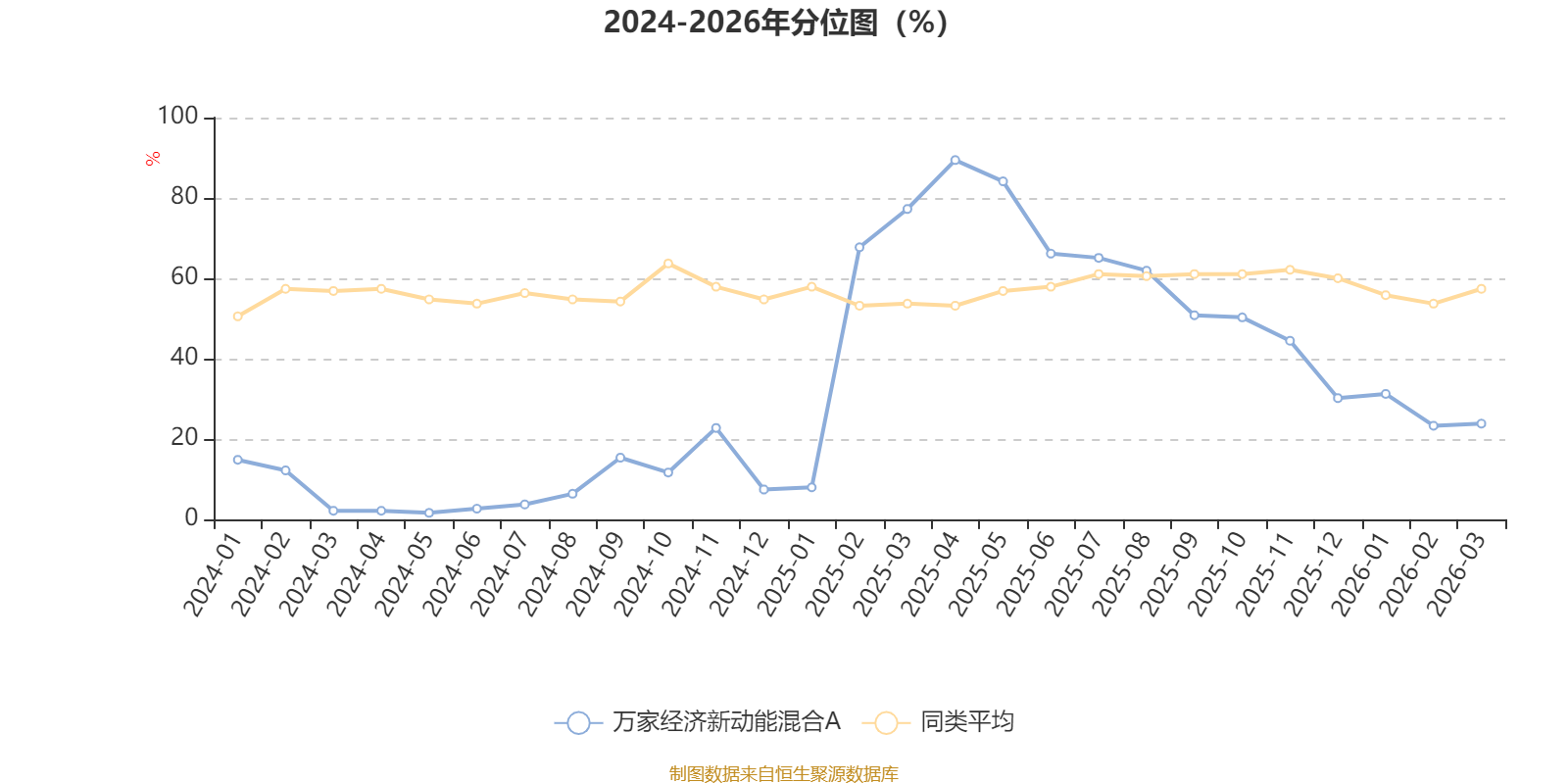 通过所选区间该基金净值增长率分位图,可以观察该基金与同类基金业绩比较情况。图为坐标原点到区间内某时点的净值增长率在同类基金中的分位数。