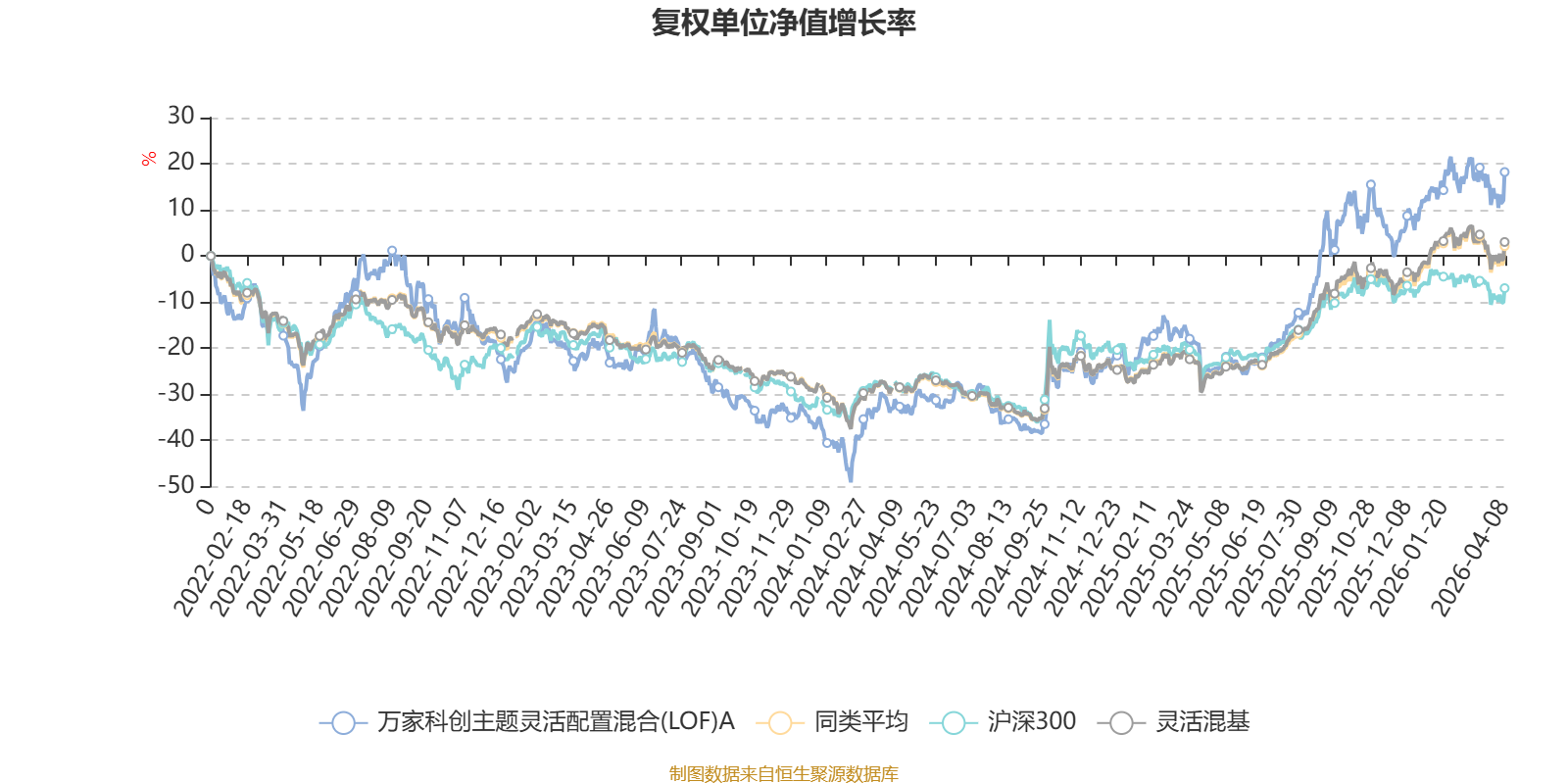 截至4月8日,万家科创主题灵活配置混合(LOF)A近三个月复权单位净值增长率为3.76%,位于同类可比基金279/1287;近半年复权单位净值增长率为4.61%,位于同类可比基金515/1286;近一年复权单位净值增长率为63.82%,位于同类可比基金249/1286;近三年复权单位净值增长率为43.94%,位于同类可比基金188/1286。